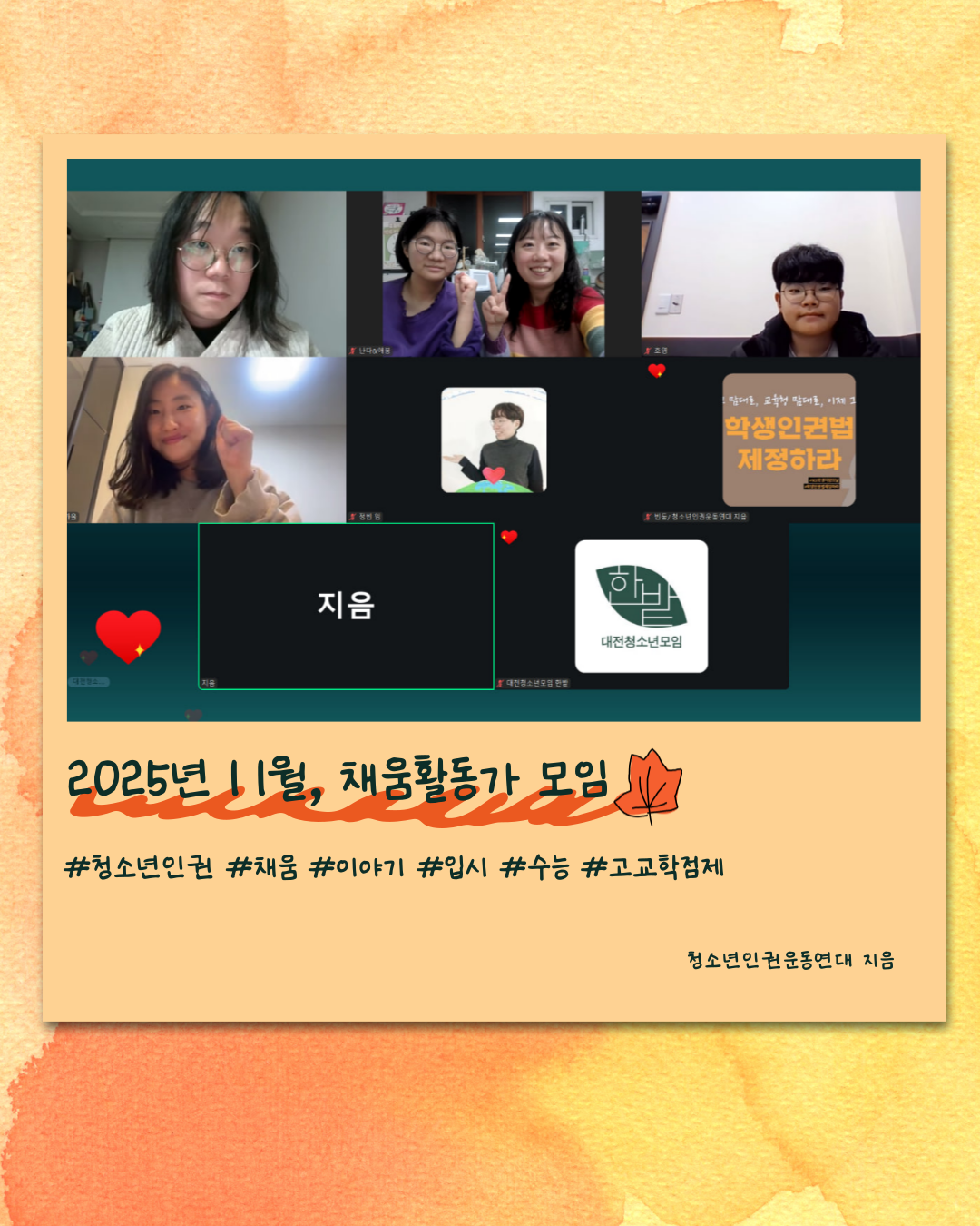 | [채움 후기] 수능/입시경쟁교육과 청소년인권을 이야기했어요!