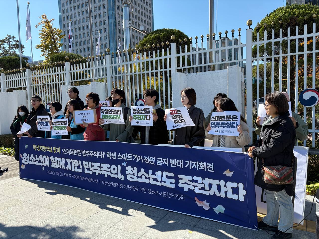| "96년 전 독립을 외친 청소년들은 “언론, 집회, 결사, 출판의 자유”, “학생 대표의 직원회 참여”도 동시에 요구했다. 이 요구가 아직도 현실이 되지 않고 있다는 것이야말로 우리 사회가 부끄러워해야 할 일이다. 우리는 여기에 더해 “스마트폰의 자유”를 외친다. 지금과 같이 청소년을 통제의 대상으로만 바라본다면 민주주의는 청소년들에게는 영영 허울뿐인 장식으로 남을 것이다. 11월 3일, 우리가 기억해야 할 첫 줄은 이것이다. 청소년도 시민이다. 청소년도 주권자다." |