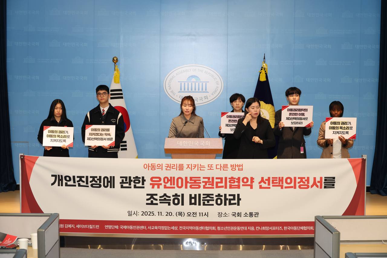 | "기후위기 시대, 경쟁교육이 심화된 시대, 노키즈존으로 차별을 정당화하는 시대, 그리고 이주배경아동이 배제되는 시대에 제3선택의정서(OP3 CRC)가 절실히 필요해지는 순간이다. (...) 보건복지부와 외교부가 제3선택의정서를 비준할 때까지, 대한민국 모든 아동과 함께 나갈 것이며, 제3선택의정서 비준 이후에도 대한민국 내 아동인권 침해 문제가 사라질 때까지 우리는 연대하며 목소리를 멈추지 않을 것이다." |